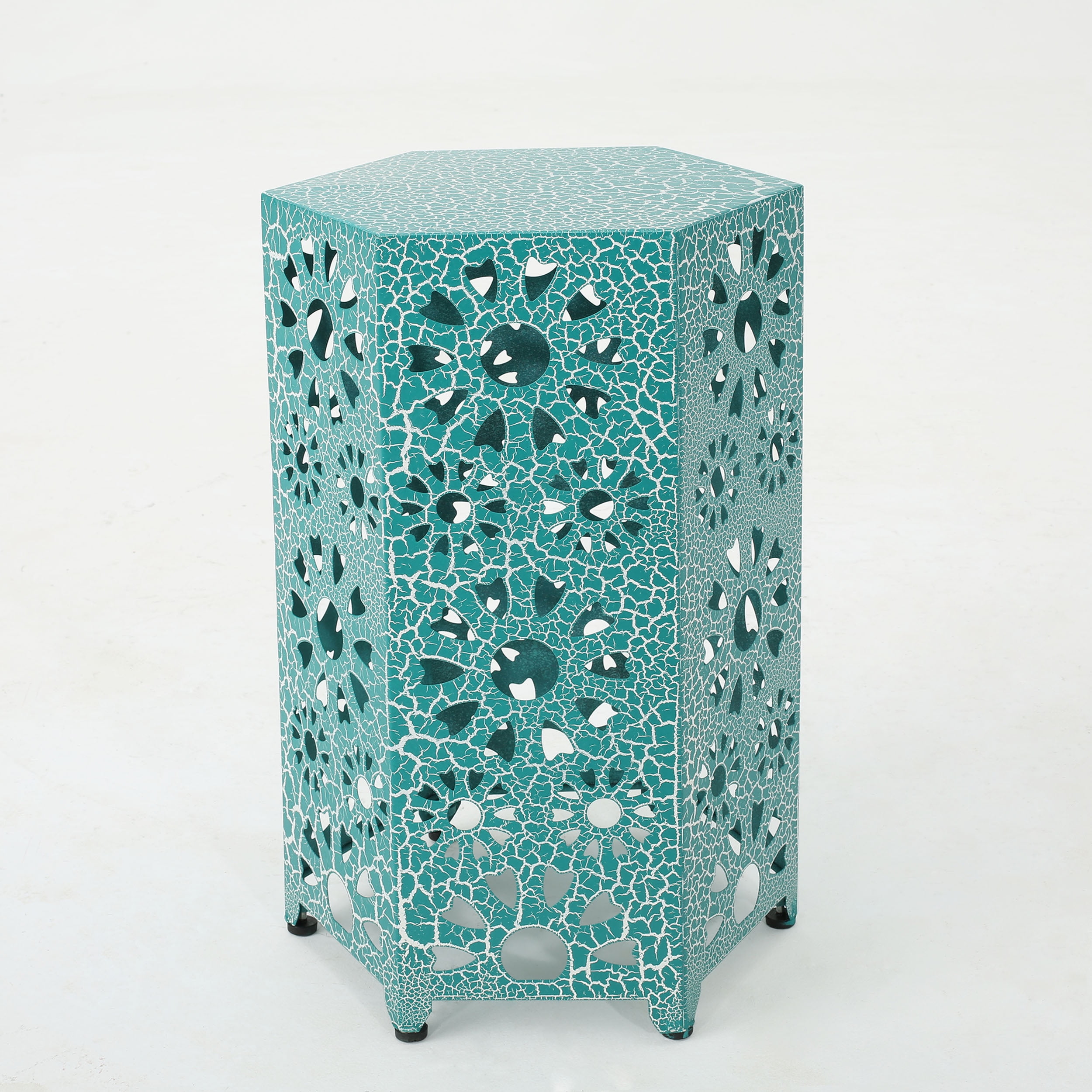 Elliot Outdoor 12 Inch Crackle Teal Sunburst Iron Side Table Crackle Teal Patio Lawn Garden Tables from st.hzcdn.com