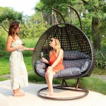 Amazon Com Island Gale Hanging Basket Chair Outdoor Front Porch Furniture With Stand And Cushion Brown Wicker Red Cushion Garden Outdoor from images-na.ssl-images-amazon.com