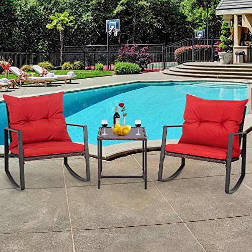 Modern 3 pieces patio furniture set rocking wicker bistro sets.