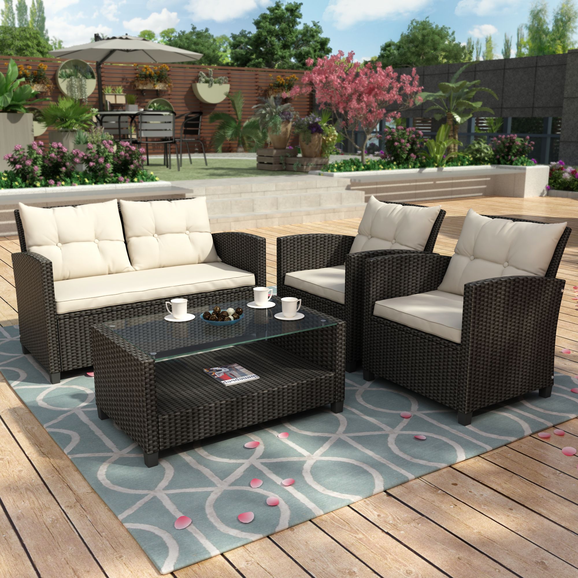 Amazon Com Patio Furniture Set 4 Piece Outdoor Wicker Sofas Rattan Chair Wicker Conversation Set Coffee Table Bistro Sets For Pool Backyard Lawn Brown Garden Outdoor from images-na.ssl-images-amazon.com
