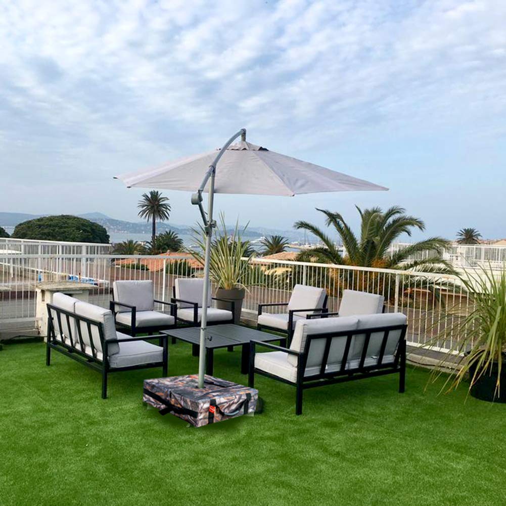 Stabilize your offset patio umbrellas cross base with this saddlebag style sand bag. They are great quality, water proof and worth the price. Please select your parts from the options below. Fill with between 44 lbs.