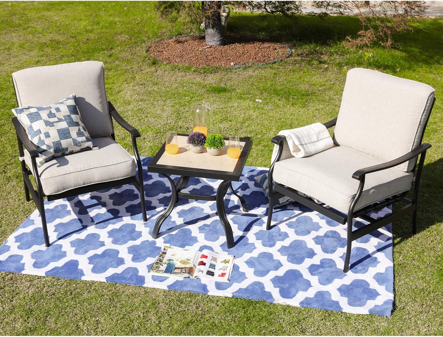Your patio is that special place where you can go to enjoy of a drink, read a good book, enjoy of a family barbecue, entertain guests, sitting around a fire pit or simply get to relax after a long day. The gentle, white silhouettes enchant with their curves and volutes. Our outdoor patio furniture sets are the best choice to liven up the party.