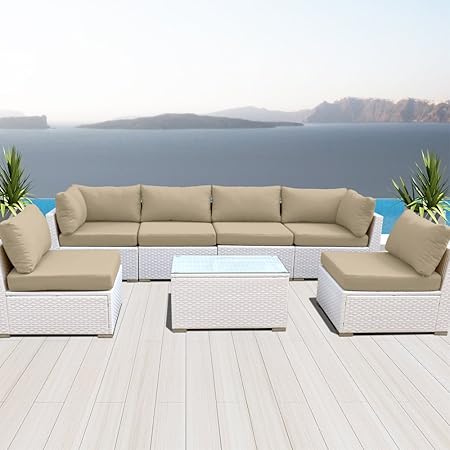 Color:light beige modenzi 7g outdoor set create a beautiful outdoor seating area that you have always dreamed of with this 7pcs patio furniture sofa set from modenzi outdoor.