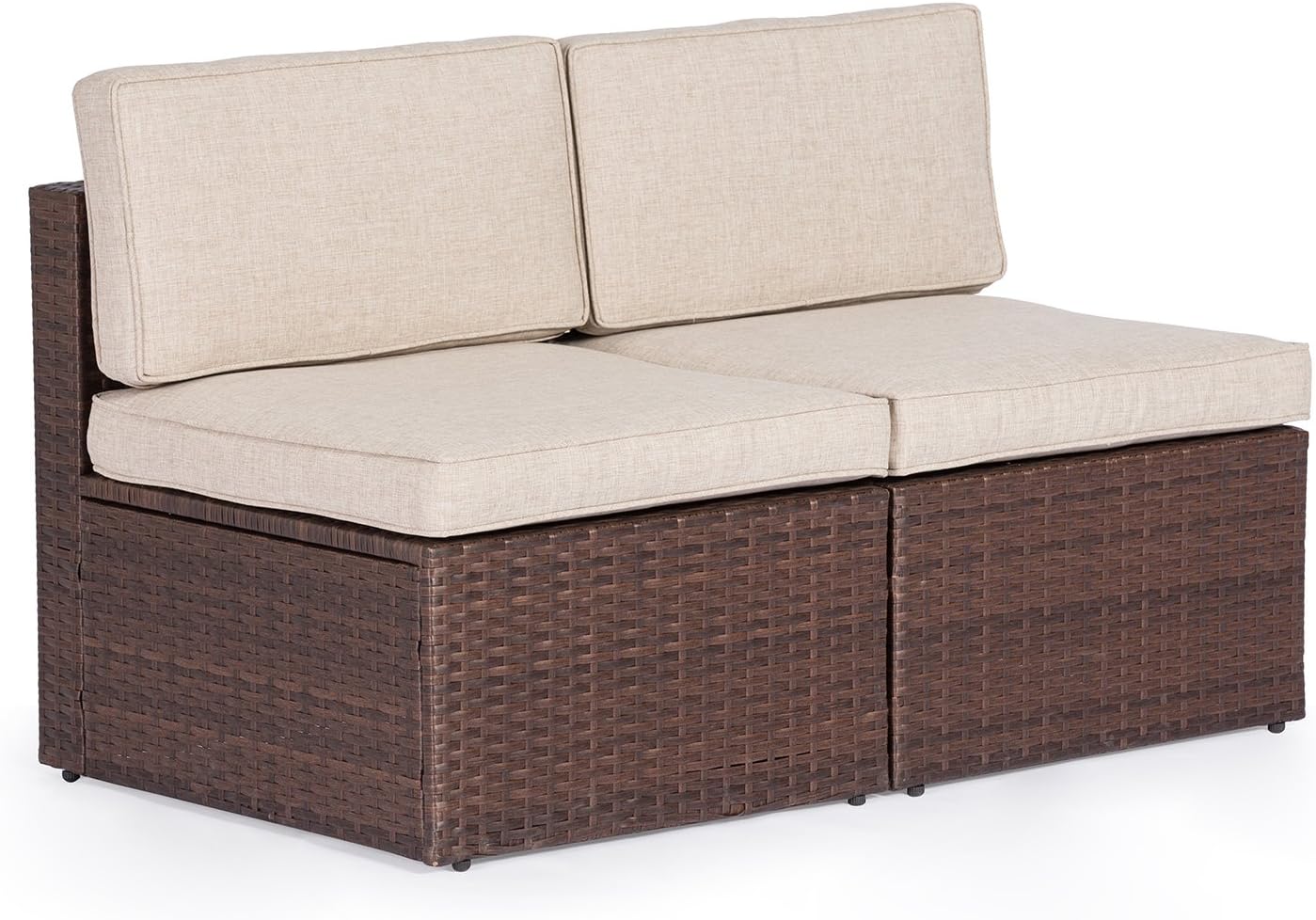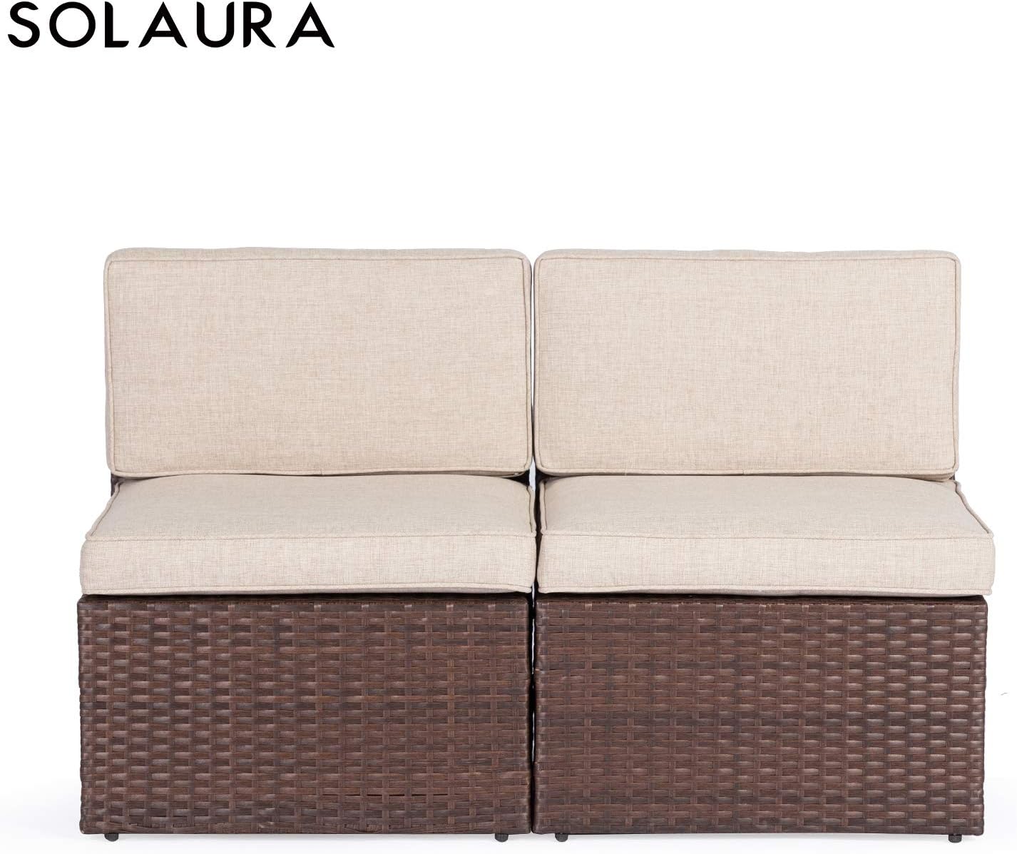 Amazon Com Solaura Outdoor 5 Piece Sectional Furniture Patio Half Moon Set Brown Wicker Conversation Sofa Set With Beige Cushions Sophisticated Glass Coffee Table Beige Garden Outdoor from images-na.ssl-images-amazon.com