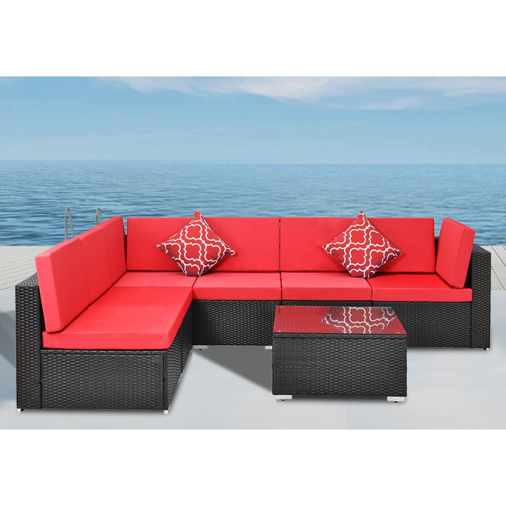 Awesome 7 Pc Outdoor Patio Furniture Ideas. 62*65*89cm,( sunbrella, olefin,arylic fabric available) table: Furnimy 7 pcs outdoor patio furniture set cushioned sectional conversation sofa set rattan wicker gray with tempered glass coffee table and 2 red pillows (gray brown).