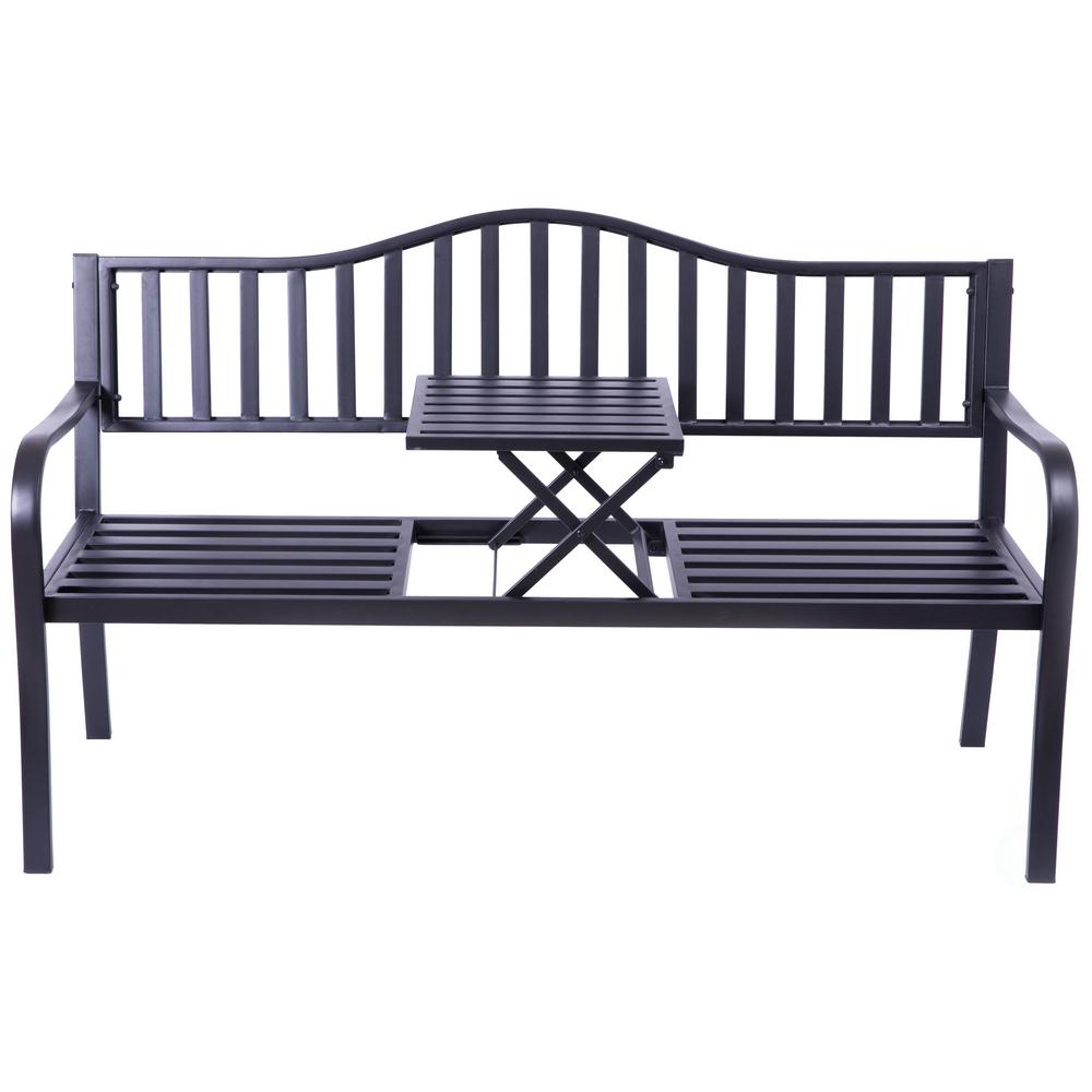 Mind Blowing Patio Steel Bench Furniture Black Gallery. It features a mesh style on the backrest. Patio park garden bench outdoor deck steel frame.