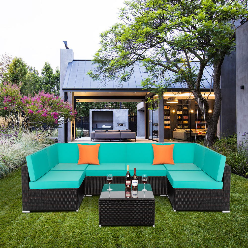 54+ 7Pc Outdoor Patio Garden Wicker Furniture Ratta Inspiration. This contemporary low profile rattan sectional set features clean bold lines and complementary color schemes making it the perfect addition. Sunvivi outdoor 7 piece outdoor patio furniture sets, all weather black pe wicker furniture set, patio sectional conversation sofa set with coffee table, removable warm grey cushions.